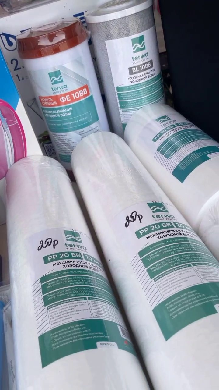 Полная линейка сменных элементов для всех типов фильтров: механические, угольные, умягчающие, мембраны обратного осмоса. Все картриджи для фильтров в наличии — можно приобрести сразу на выставке.