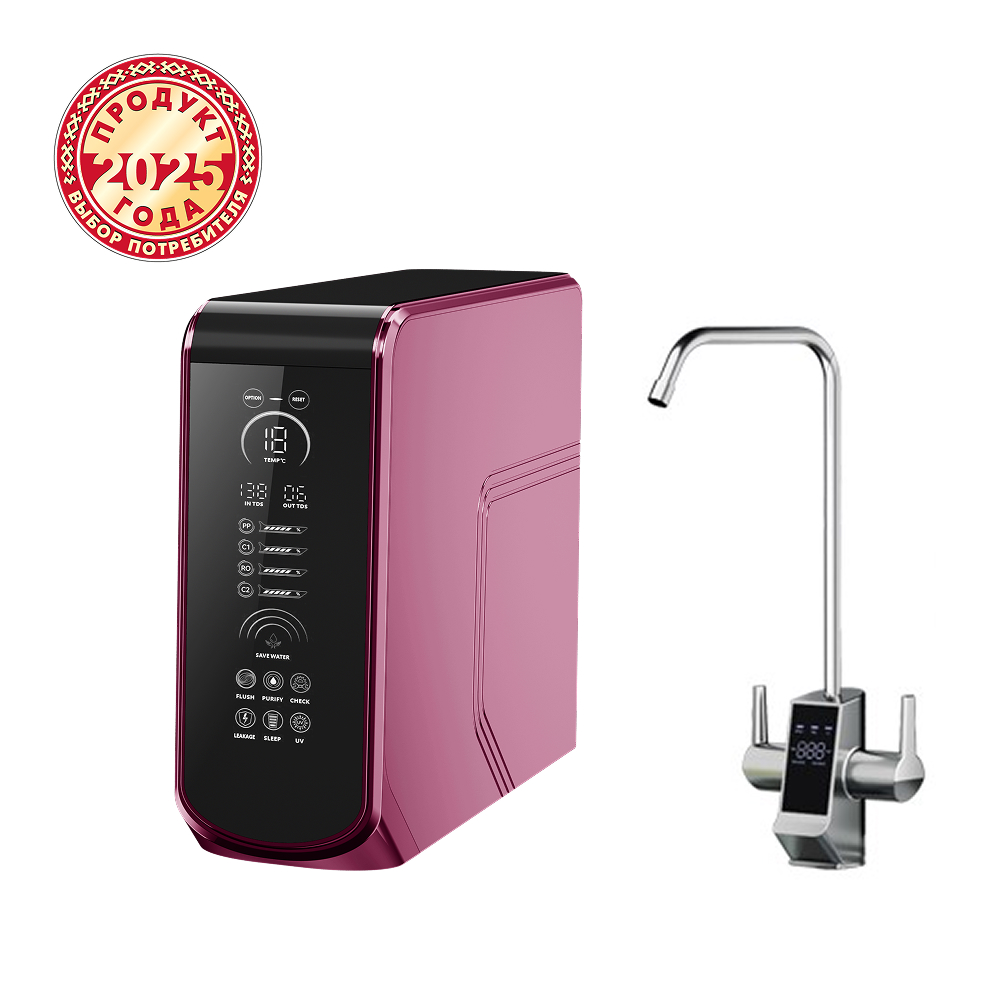 - Умный контроль - модель оснащена интеллектуальным сенсорным экраном для мониторинга качества воды (TDS) в реальном времени