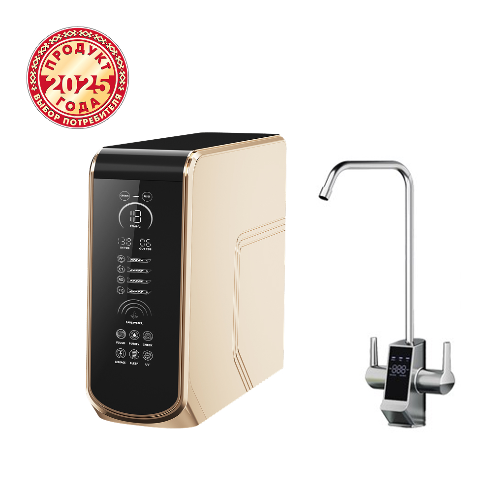 - Умный контроль - модель оснащена интеллектуальным сенсорным экраном для мониторинга качества воды (TDS) в реальном времени